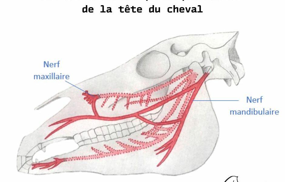 - La muserolle : les nœuds doivent être placés environ deux doigts sous l’apophyse zygomatique, à proximité du passage du nerf maxillaire.