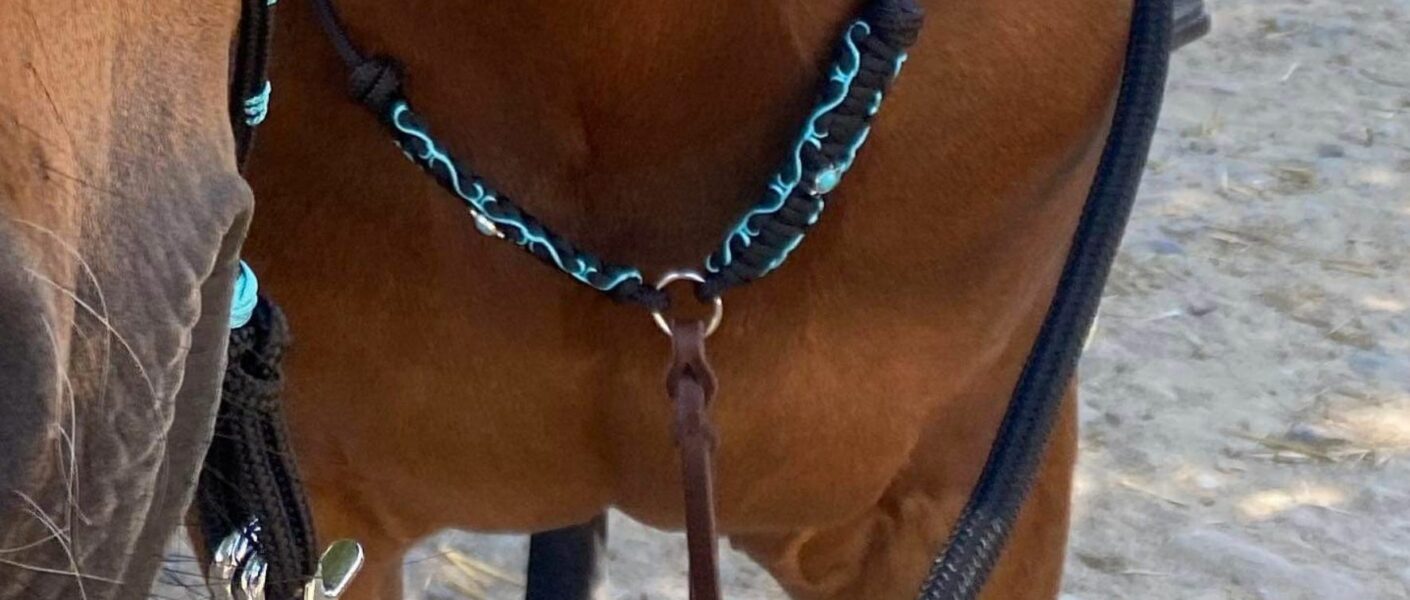 ATTENTION : si vous souhaitez monter avec votre collier d’encolure, pensez à laisser une marge de cordage pour pouvoir la prendre en main !