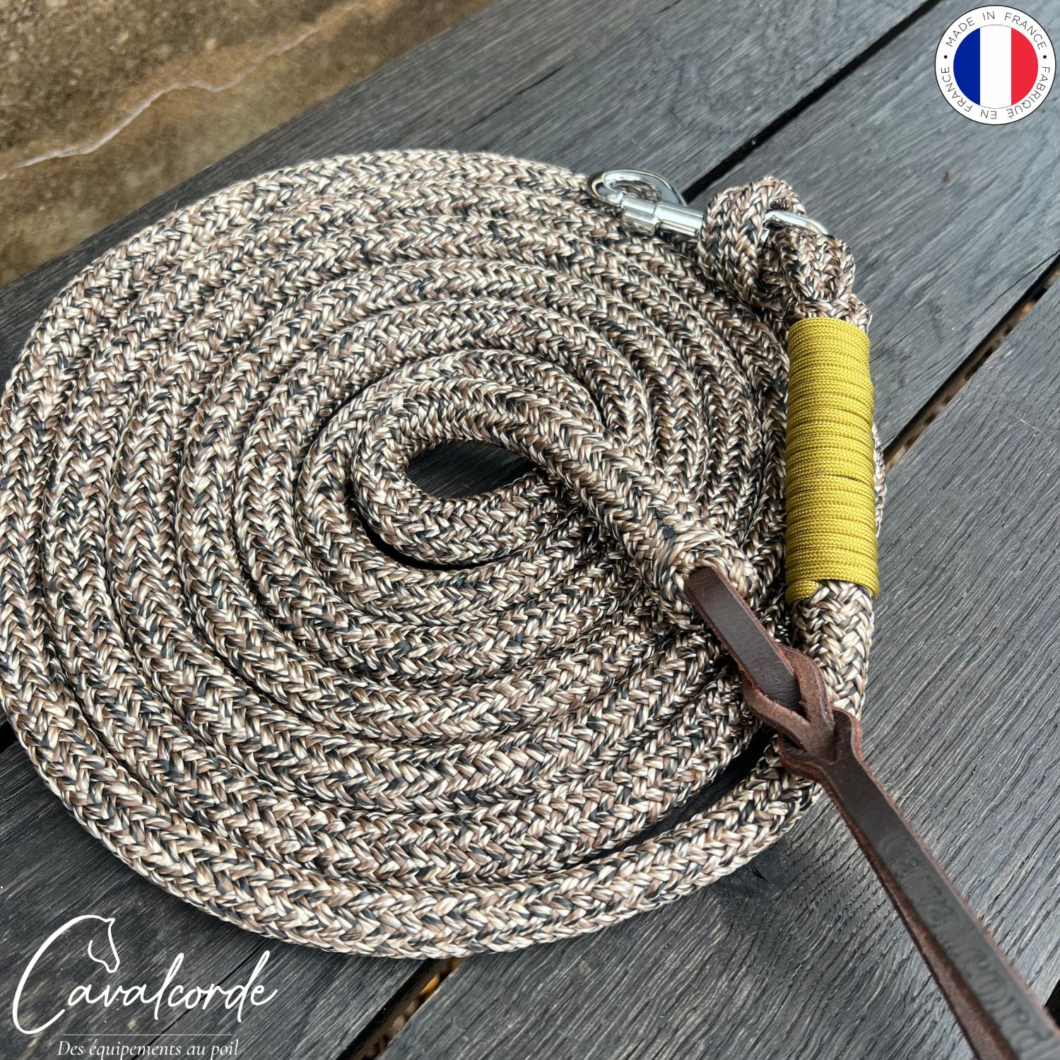 • Longe de 3,70 m : Idéale pour tout ceux qui veulent s’appliquer dans le travail à pied ou même monté. Ainsi la longueur de 3,70m est parfaite pour le travail à pied : elle permet de guider le cheval avec fluidité, de maintenir une distance sécuritaire, tout en restant assez longue pour effectuer des exercices variés (déplacements latéraux, reculer, transitions, etc.). Elle est équipée d’un mousqueton argenté amovible, facile à remplacer en cas de besoin, vous garantissant une utilisation durable.